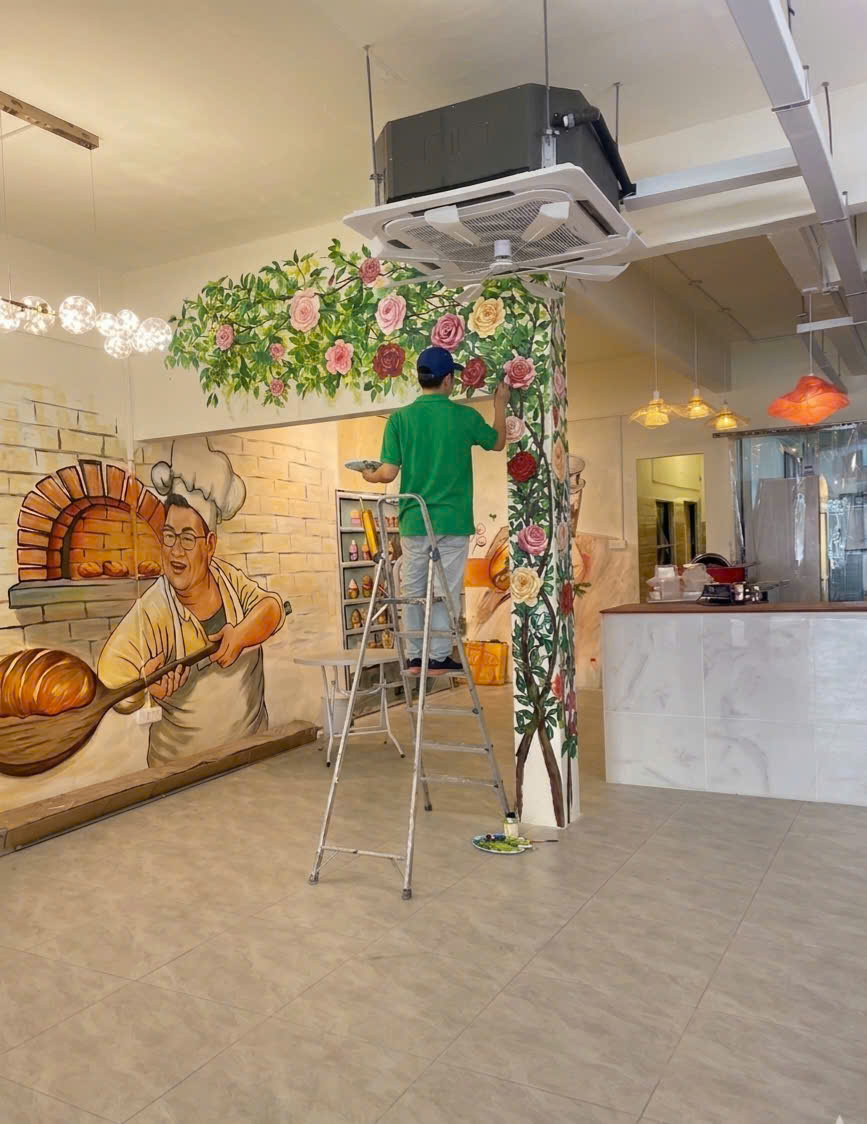Chúng tôi rất hào hứng chia sẻ một dự án tranh tường đặc biệt đang được thực hiện tại một tiệm bánh mì thủ công ở Malaysia! ????????